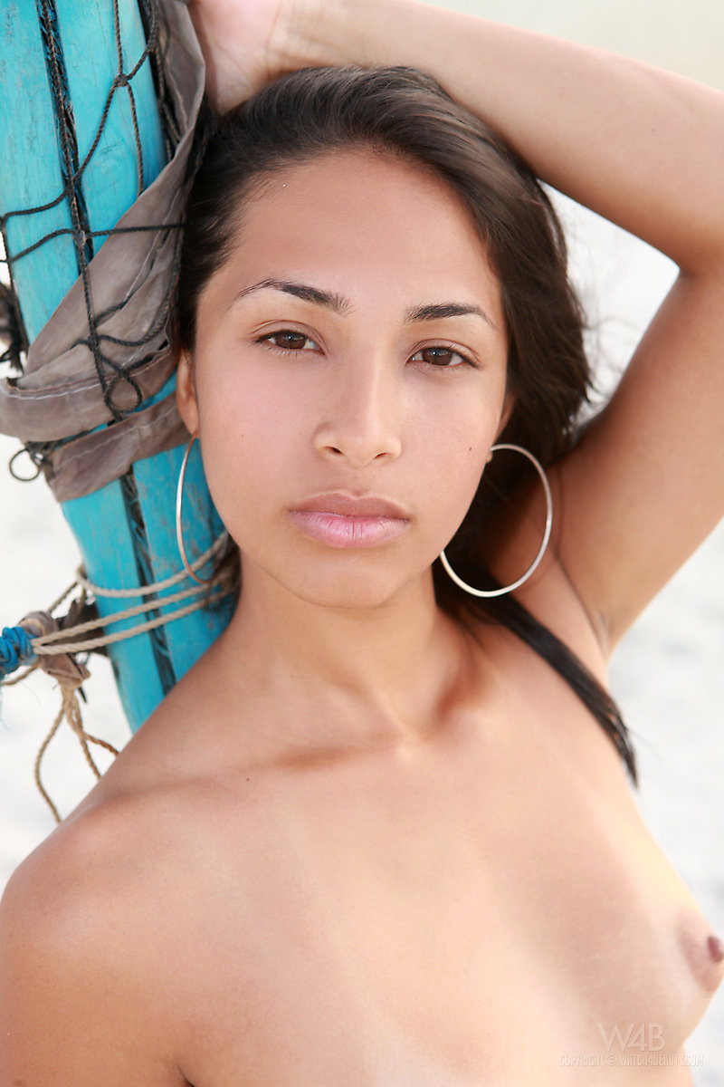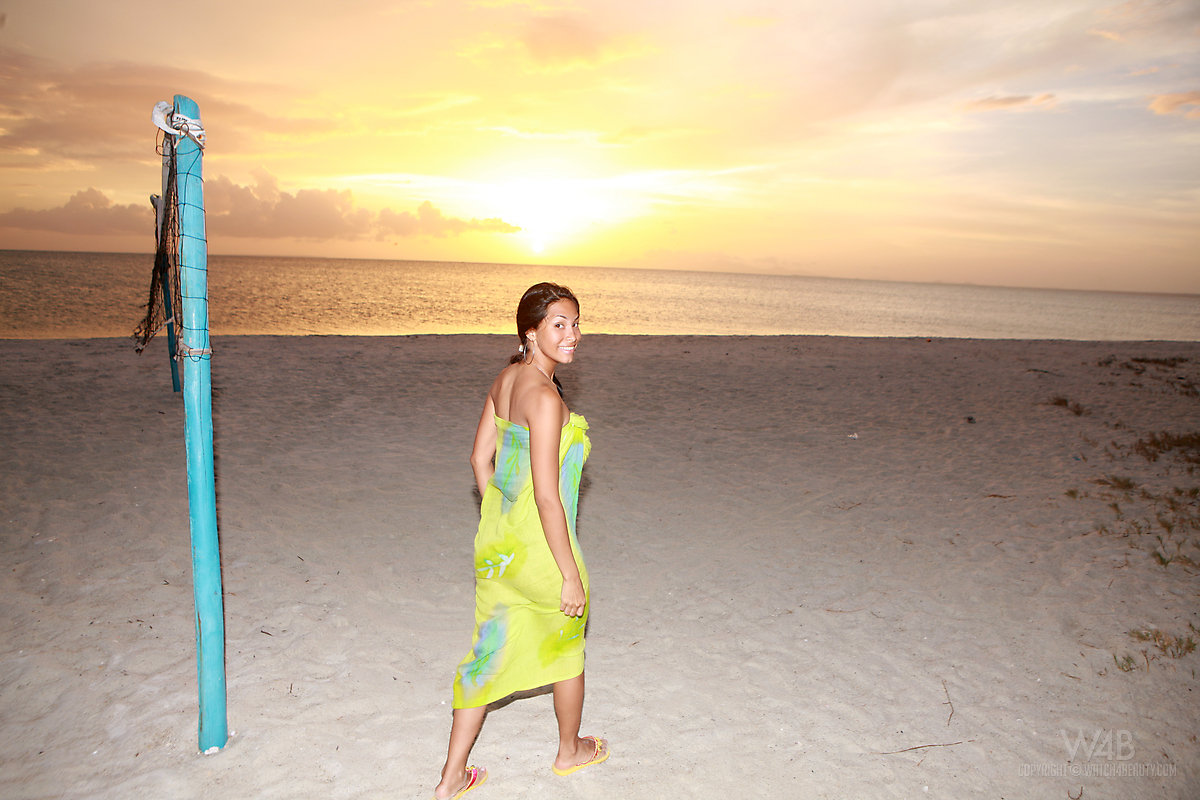 She takes the towel off her body so she can walk around on the beach completely naked.
