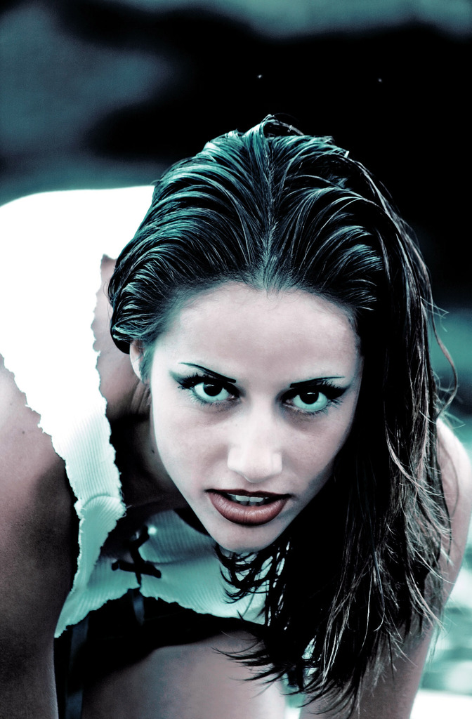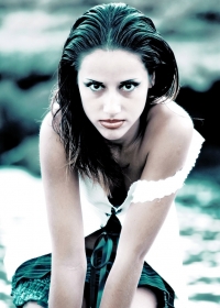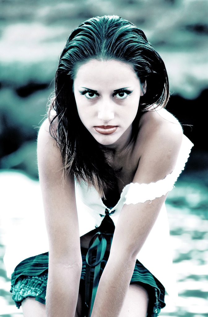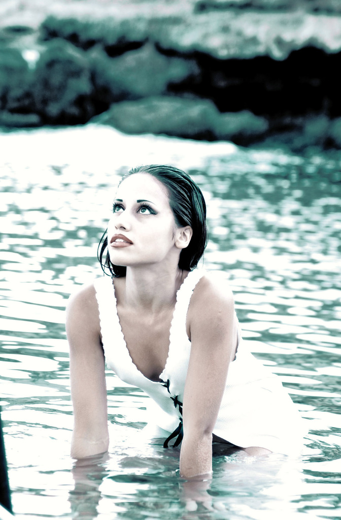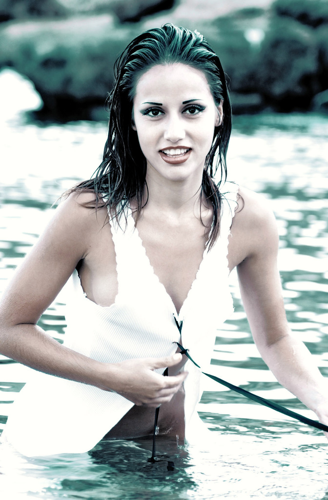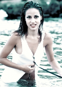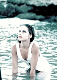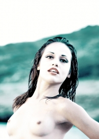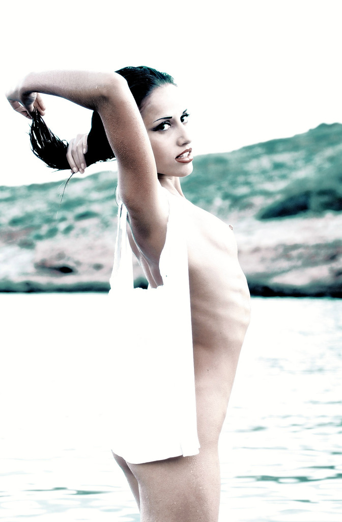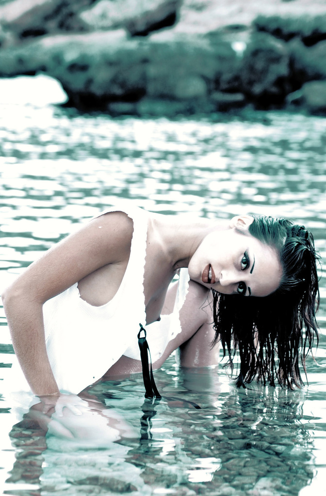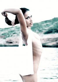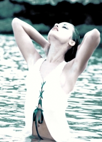 Skinny cutie swims in the local river in her sexy outfit but later she takes it off