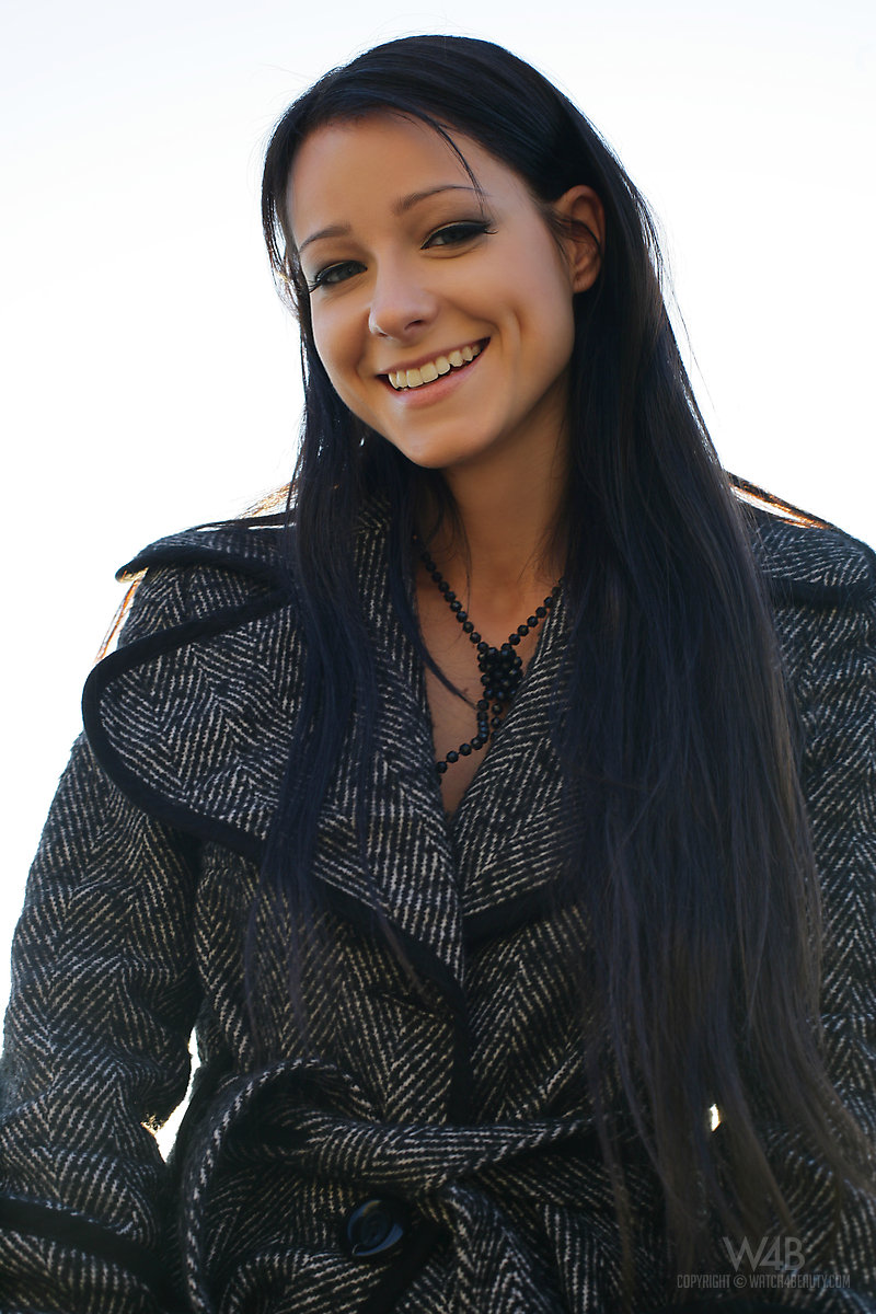 Lovely brunette wearing sexy skirt is demonstrating striptease skills with pleasure