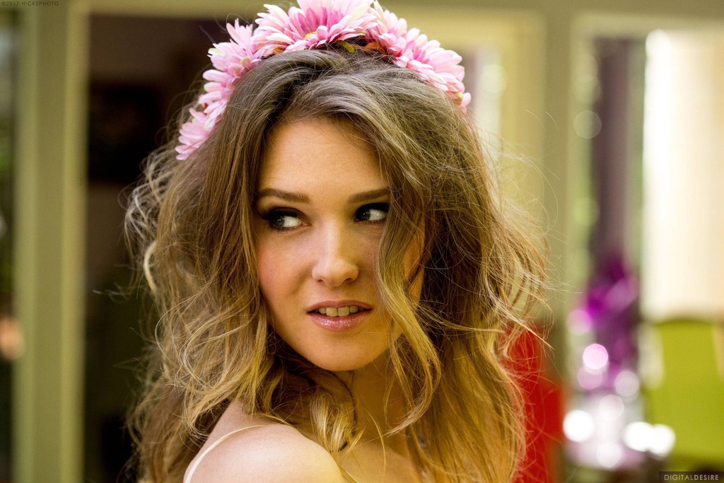 This nature goddess pulled her dress up so she could tease and please her shaved, pierced pussy.