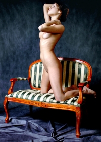 Hot smoking brunette takes off her clothes to relax on a comfy couch and to get an orgasm